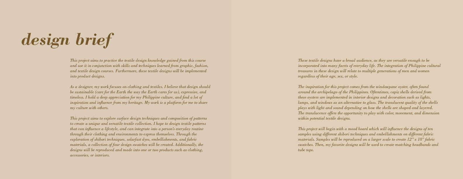 A textile collection inspired by Philippine culture. Four textile swatches were designed and further used to create multi-wear tube tops and headbands.